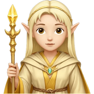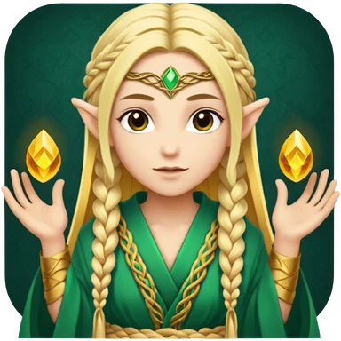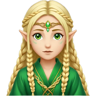 mystic elf, long golden braid, glowing runes on robe emoji | AI Emoji Generator
