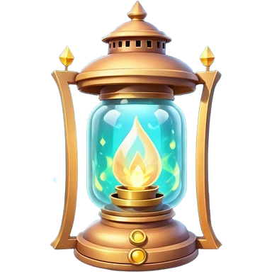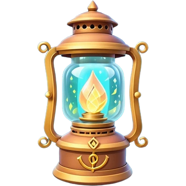 enchanted lantern object icon, strong magical glow, floating runes and sparkles, mystical light swirling inside the lantern, fantasy magic aura, 3D cartoon, mobile game icon style, centered, clean background, no text, no watermark emoji