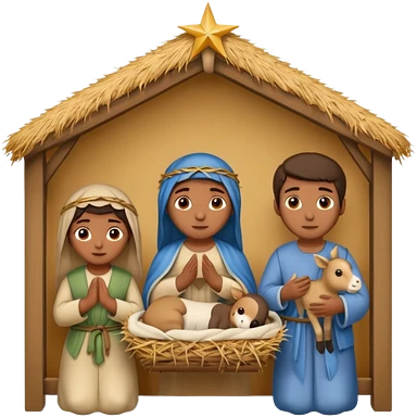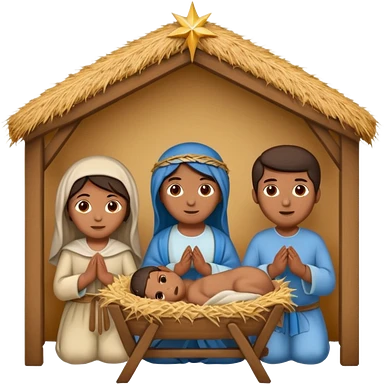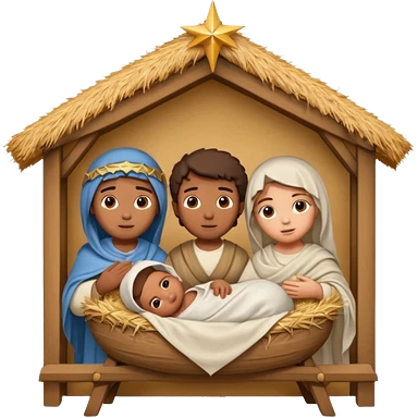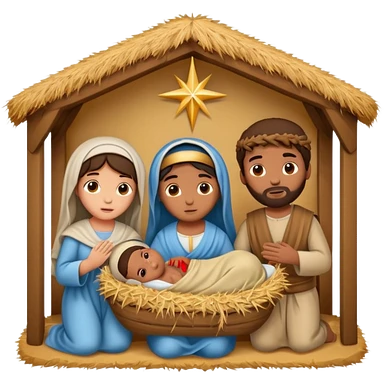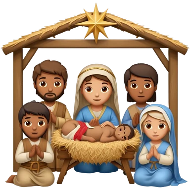 nativity scene in a manger with humans with Mediterranean skin color emoji