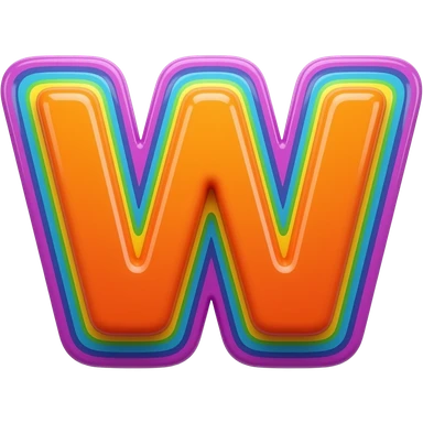 name "w" in neon orange, 3D style typography lettering, each color of the rainbow as a border outlined around each letter, isolated, 3d rendering, no emoji icons no emoji faces and must have no human figures emoji