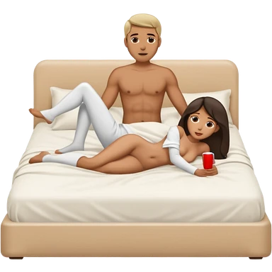 naked mixed man fucks naked woman. Botha of them are having sex on the bed. Action is showed in full height emoji