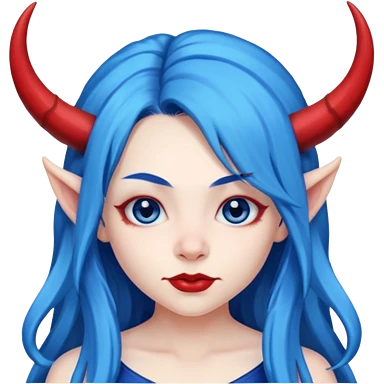 Cool devil with blue flame tail and shades, cute face, half body emoji