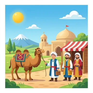 SILK ROAD STOP WITH CAMELS IN RUSSIA MERCHANTS SMILES emoji