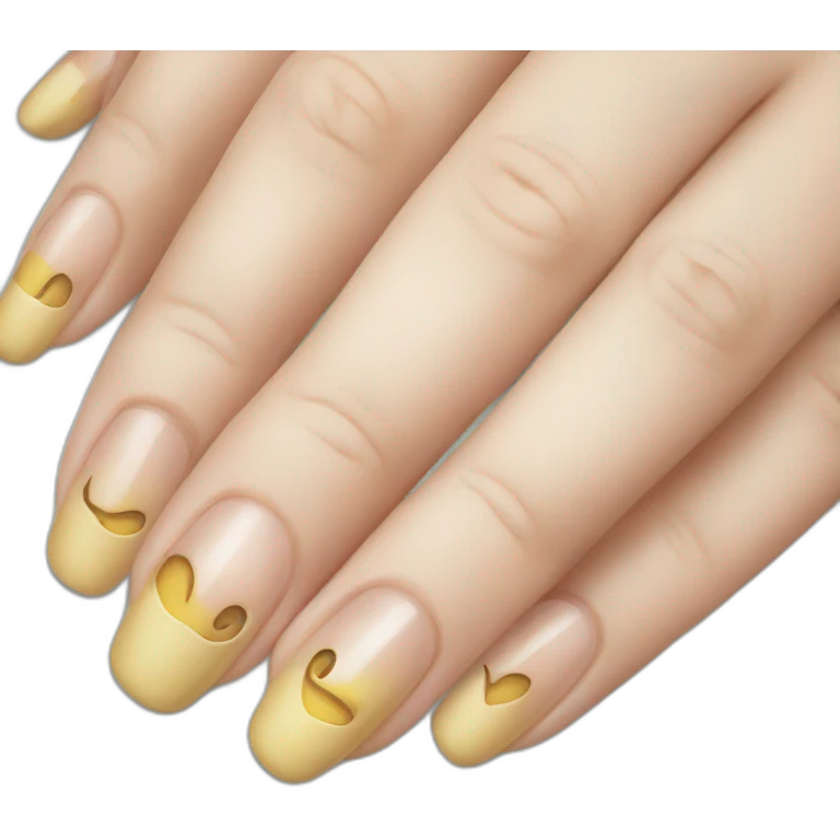 Nails cute with hello kitty wear glasses black long hair, woman wear yellow shirt , red nails , big hello kitty doll emoji
