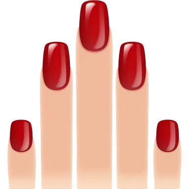 left hand of a woman with all five fingers painted in dark red nail polish, glossy finish, deep saturated red, smooth gradient, minimal details, clean and shiny emoji