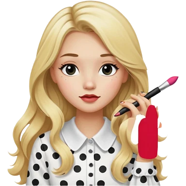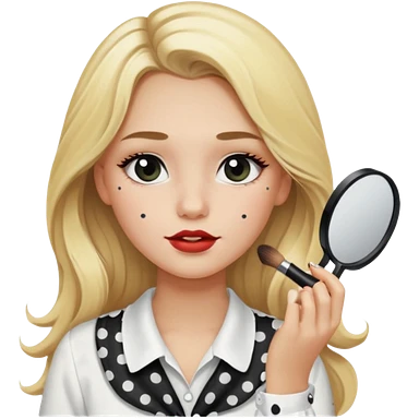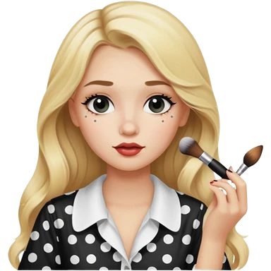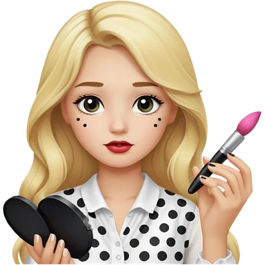 niña rubia con pelo largo y blusa blanca con lunares y maquillandose emoji