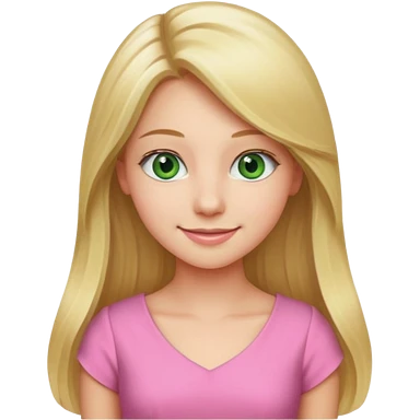 long blonde hair, real estate broker, 20 years old with a smile, green eyes, cute pink corporate dress emoji