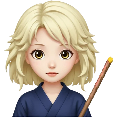 Gothic anime fairy with long beautiful black hair and dark blue dress, pastelcore, emoji