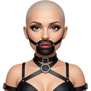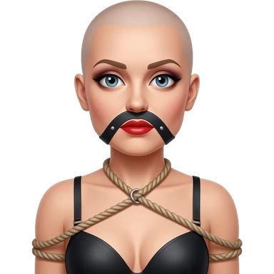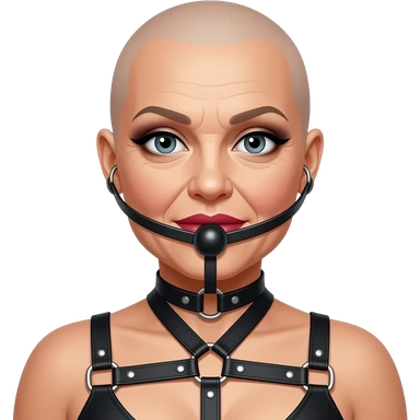 bondage bald lipstick eye shadow smokey eyes makeup bra 50 years old gag ball tied up harness feminized emoji