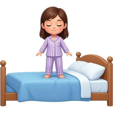 girl stands up from her bed in pijamas, she just woke up, theres is sun behind her emoji