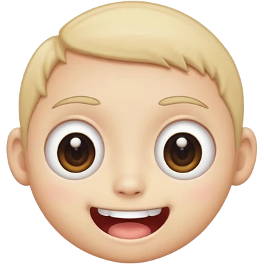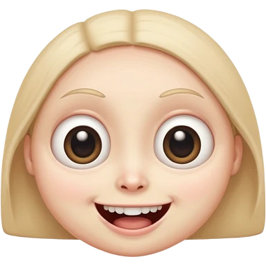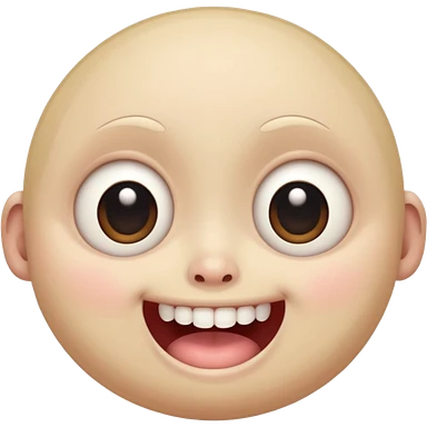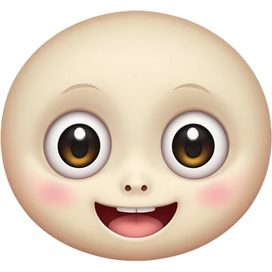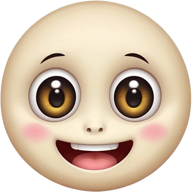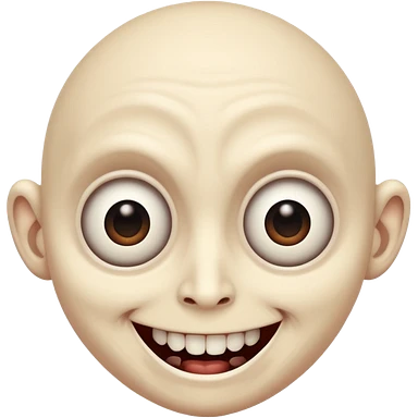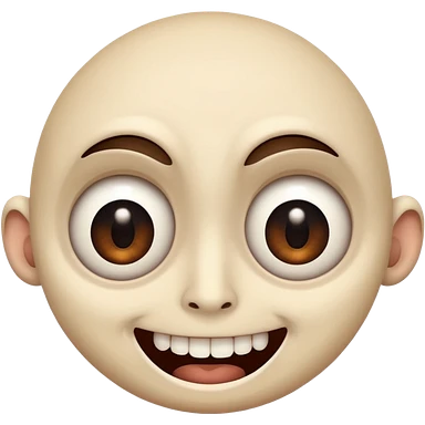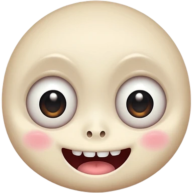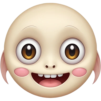 a creepy face with huge eyes and a big grin, kawaii, cute, soft, huge eyes, round mouth, mama emoji