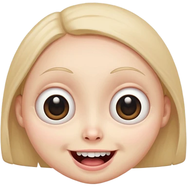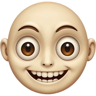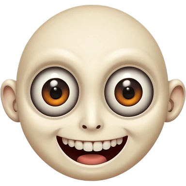 a creepy face with huge eyes and a big grin, kawaii, cute, soft emoji