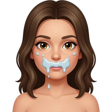Naked girl, bare chest, bare hips, shy, black wavy hair, naked, hiding boobs emoji