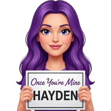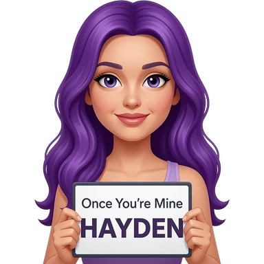 sexy girl with long purple hair holding a Once You're Mine HAYDEN sign emoji