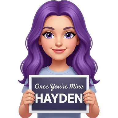 girl with long purple hair holding a Once you're mine HAYDEN sign emoji