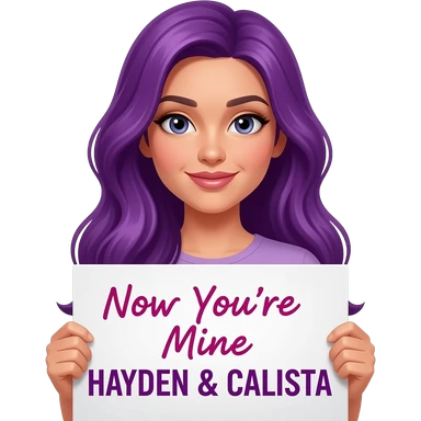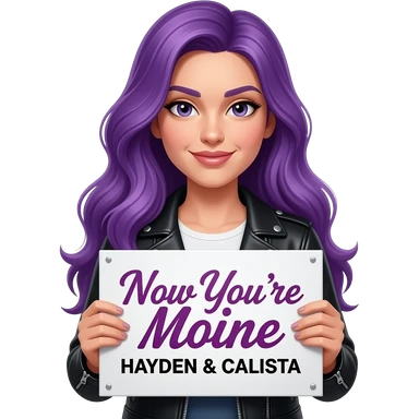 sexy girl with long purple hair holding a Now You're Mine HAYDEN & CALISTA sign emoji