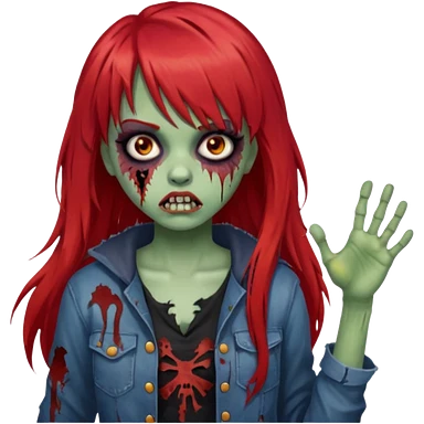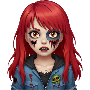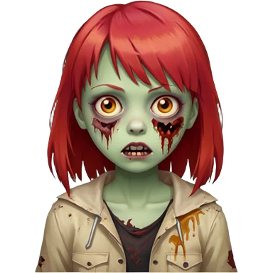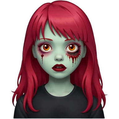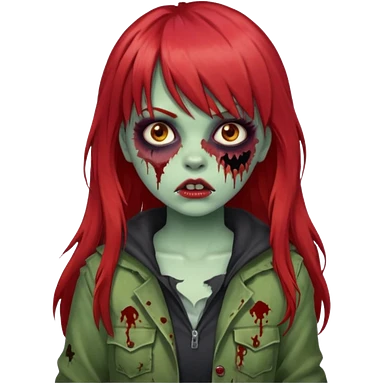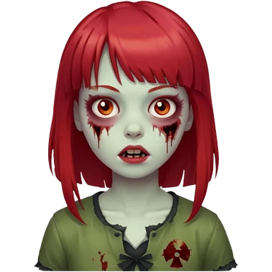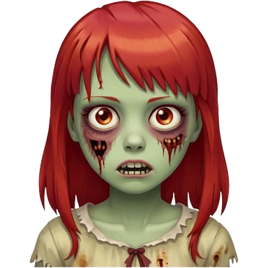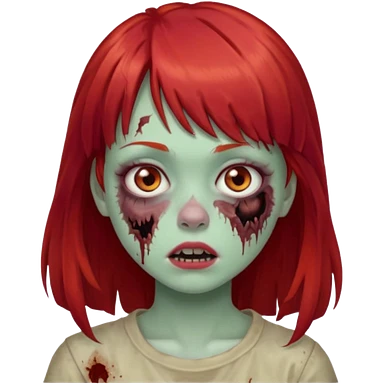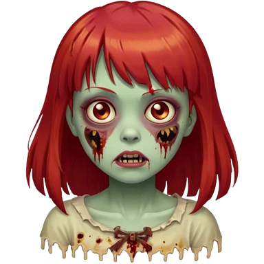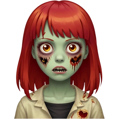 Uma menina de franja cheia, cabelos vermelhos e olhos de mel zumbi emoji