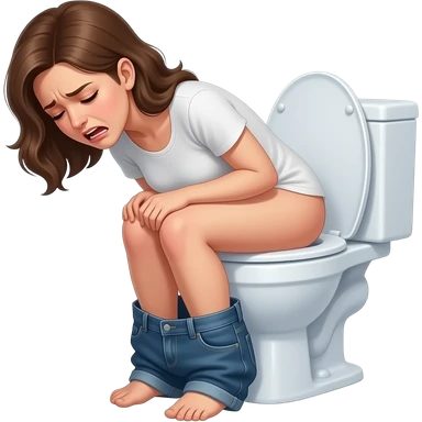 Naked Woman on toilet pants down shirt on grunting suffering emoji