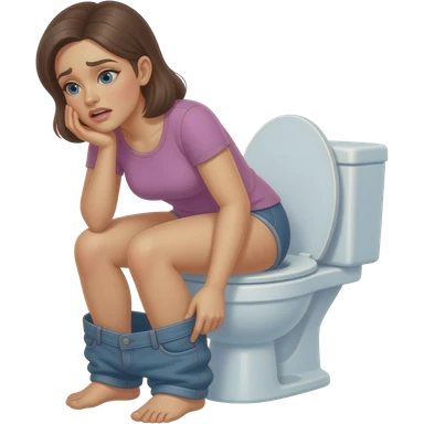 Woman pants down diarrhea on toilet emoji