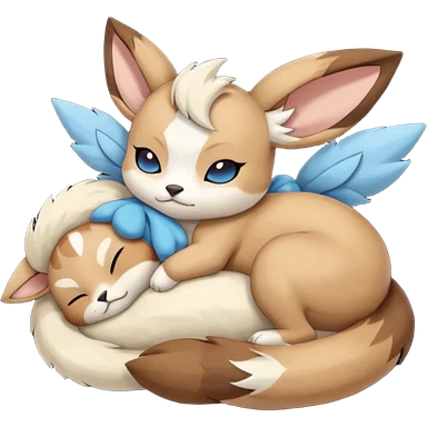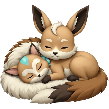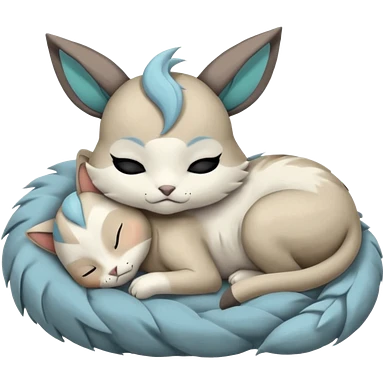 Animalistic tired sleeping snoozing snoring kawaii chibi sleepy happy glad somber mongral Meloetta-Absol-Eevee-Minccino-Gatomon-hybrid-fusion-animal emoji