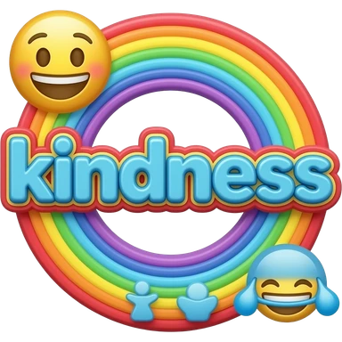 name "kindness" in baby blue, 3D style typography lettering, each color of the rainbow as a border outlined around each letter, isolated, 3d rendering, no emoji icons no emoji faces and must have no human figures emoji