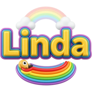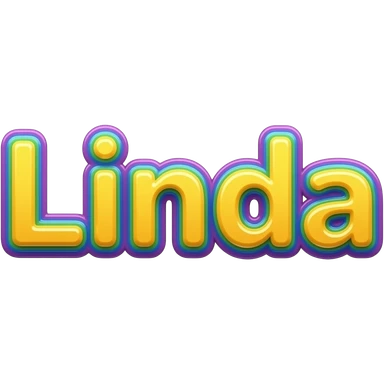 name "Linda" in neon yellow, 3D style typography lettering, each color of the rainbow as a border outlined around each letter, isolated, 3d rendering, high definition, 600 dpi.must have no emoji icons no emoji faces, must have no human figures, emoji