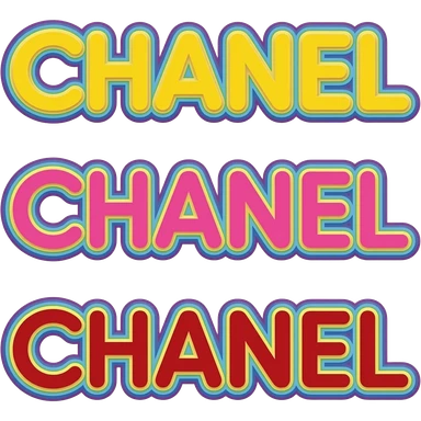 name "Chanel" in purple yellow orange 3D style typography lettering, each color of the rainbow as a border outlined around each letter, isolated, 3d rendering, no emoji icons no emoji faces and must have no human figures emoji | AI Emoji Generator