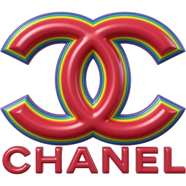 name "Chanel" in bold pink red 3D style typography lettering, each color of the rainbow as a border outlined around each letter, isolated, 3d rendering, no emoji icons no emoji faces and must have no human figures emoji