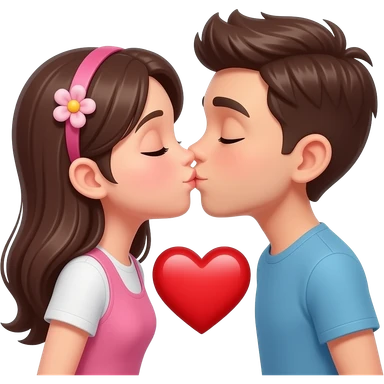 ragazza e ragazzo che si baciano con in mezzo il cuore rosso emoji