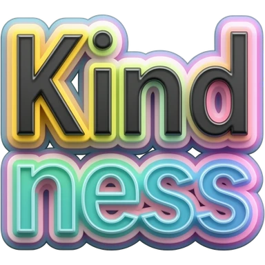 name "kindness" in baby blue, 3D style typography lettering, each color of the rainbow as a border outlined around each letter, isolated, 3d rendering, no emoji icons no emoji faces and must have no human figures emoji | AI Emoji Generator