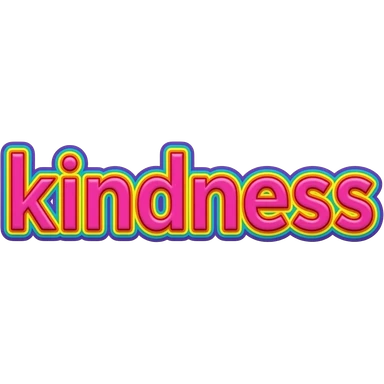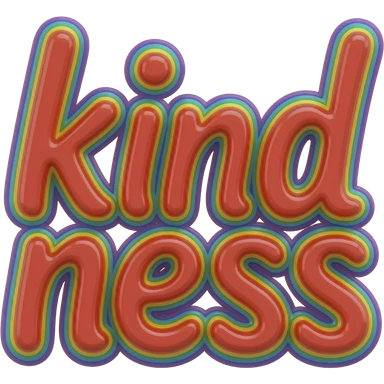 name "kindness" in red, 3D style typography lettering, each color of the rainbow as a border outlined around each letter, isolated, 3d rendering, no emoji icons no emoji faces and must have no human figures emoji