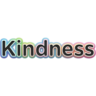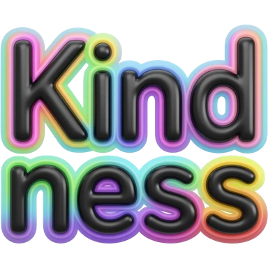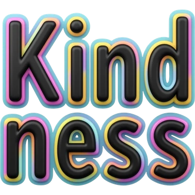 Word "Kindness" in small size black color 3D style typography lettering, with each neon pastel color as a layered effect outlined around each letter, isolated, 3d rendering, no emoji icons no emoji faces and must have no human figures emoji