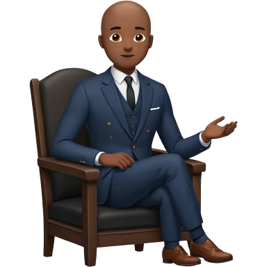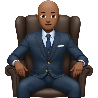 Black man, bald, in a suit, sitting on a chair emoji