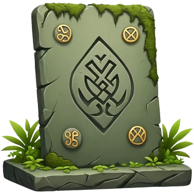 Stone Tablet – Carved gray slab with ancient runes in jungle emoji