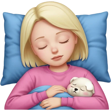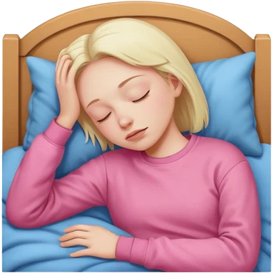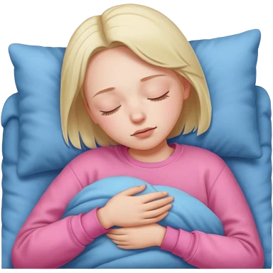 blonde girl napping under pink blanket emoji