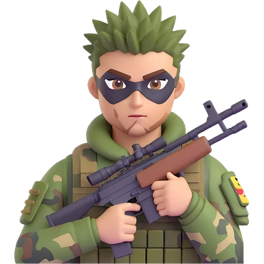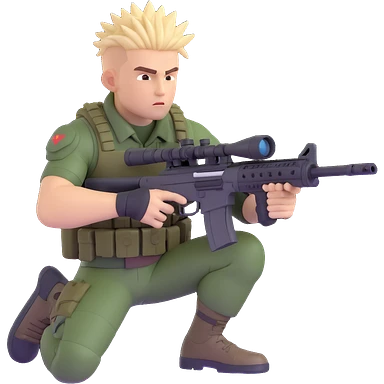 muscular soldier with spiky hair, aiming a sniper rifle, modern military outfit emoji