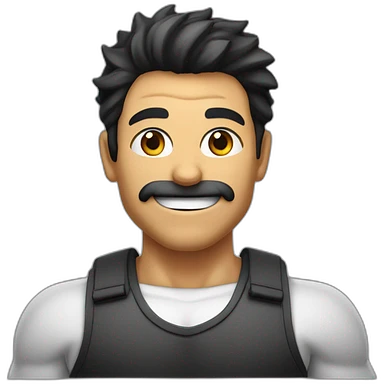 homme musclé avec des cheveux noir un regard combattent et un sourirs démoniaque emoji