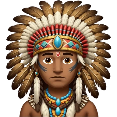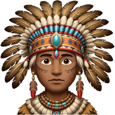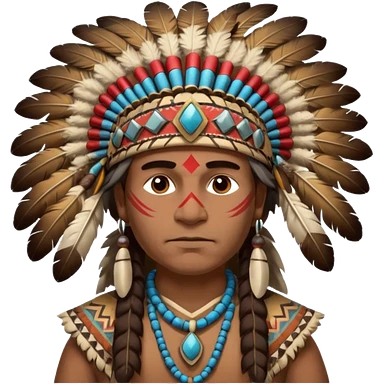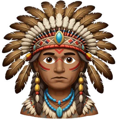 A proud chief with feathered headdress, calm powerful stance, and painted patterns on his face. emoji