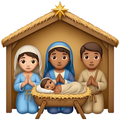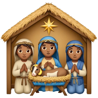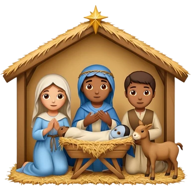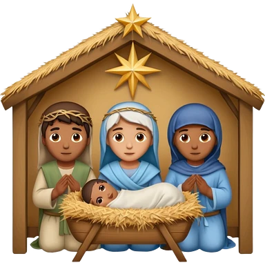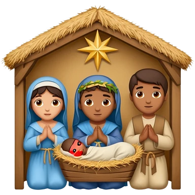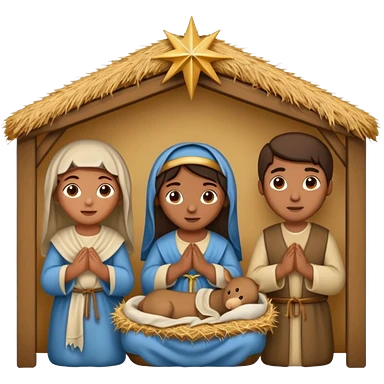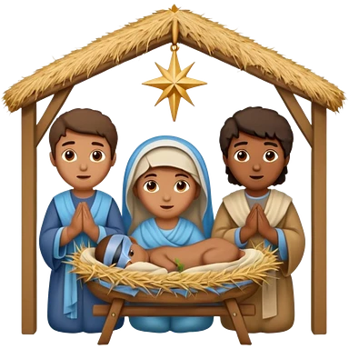 Nativity scene with baby Jesus in a manger, Mary, Joseph, and star above emoji
