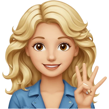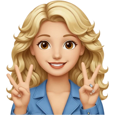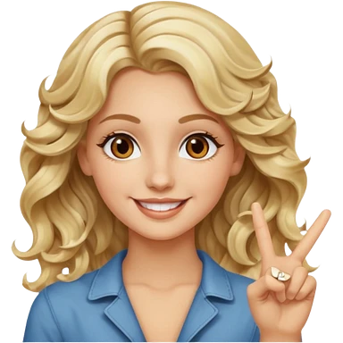 Luxury blonde model, brown eyes, wavy hair, peace sign emoji