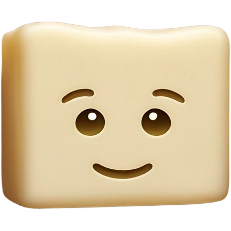 single cube of traditional Marseille soap, matte slightly rough surface, pale olive-green color, embossed classic markings on sides, natural imperfections like air bubbles and uneven edges, no packaging or extras, soft lighting, subtle shadows, emoji scale emoji