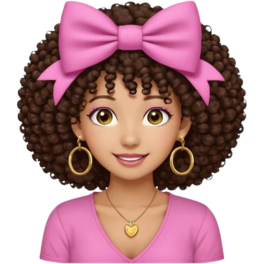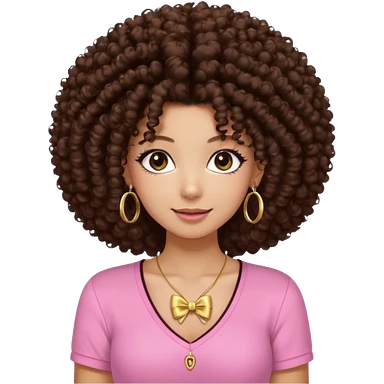 Naturally tan skin girl short darkBrown curly afropink shirt long lashes earrings necklace Brown eyes gyaru smiling closed mouth cute emoji | AI Emoji Generator