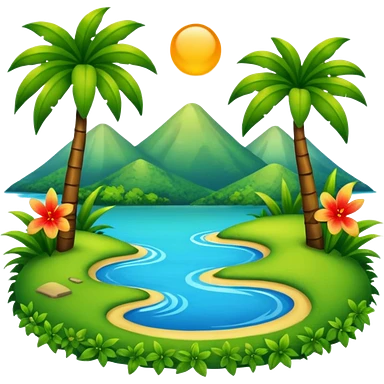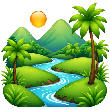 nature landscape with mountains, trees, and sun emoji