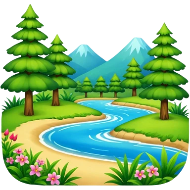 nature landscape with mountains, trees, and sun emoji