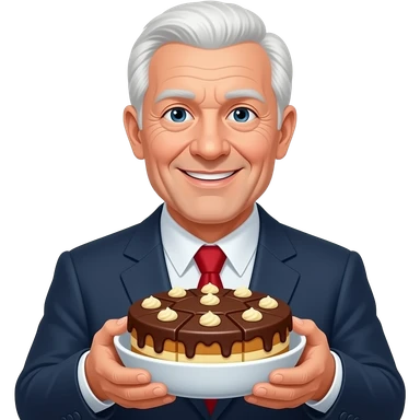 very naughty old man.short white hair. with bowl of chocolate cake, squares of chocolate and custard emoji
