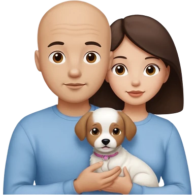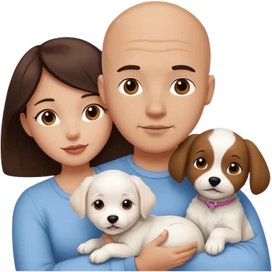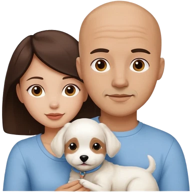 Bald guy with brunette girl and white puppy emoji