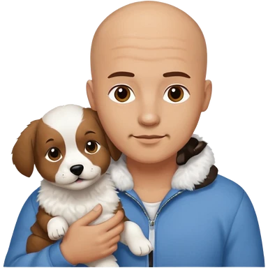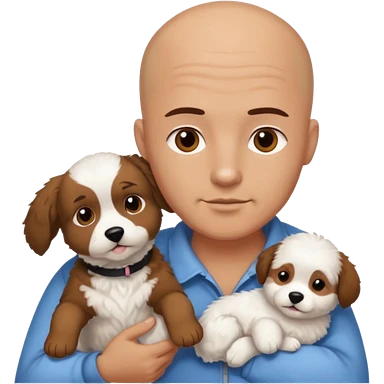 Bald guy, brunette and white puppy emoji
