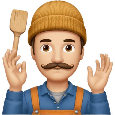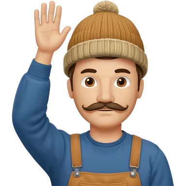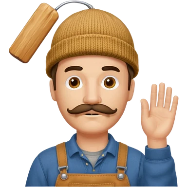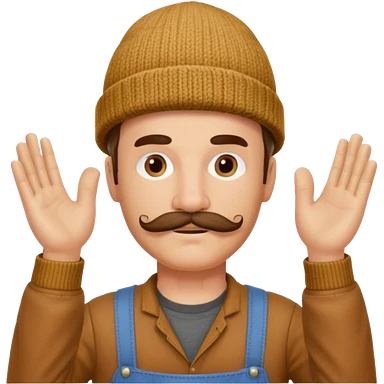 Woodworker mustache knit cap Carharttk shirt hand raised above head emoji