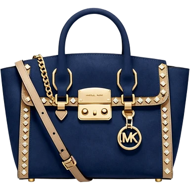 navy blue suede, Michael kors satchel purse, gold sparkling embellishments emoji