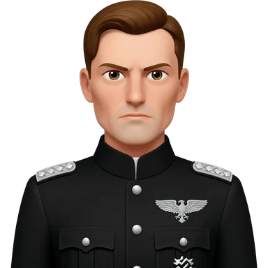 nazi leader with black hair and normal skin tone and squared mustache emoji | AI Emoji Generator